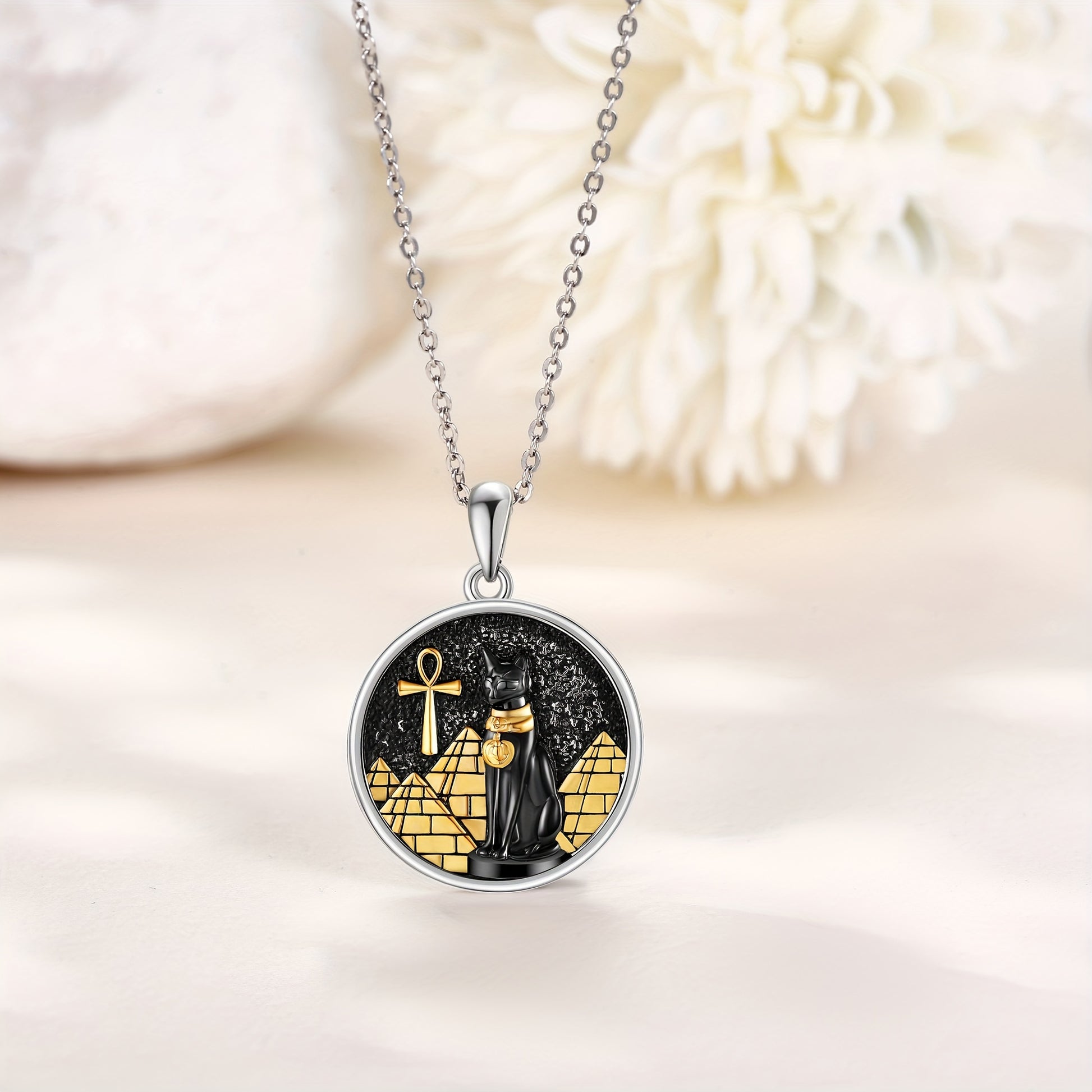 Bastet Cat Necklace Sterling Silver Egyptian Bastet Cat Pendant Necklace Ankh Eye Of Horus Egyptian Cat Jewelry Black Cat Gifts For Women Men