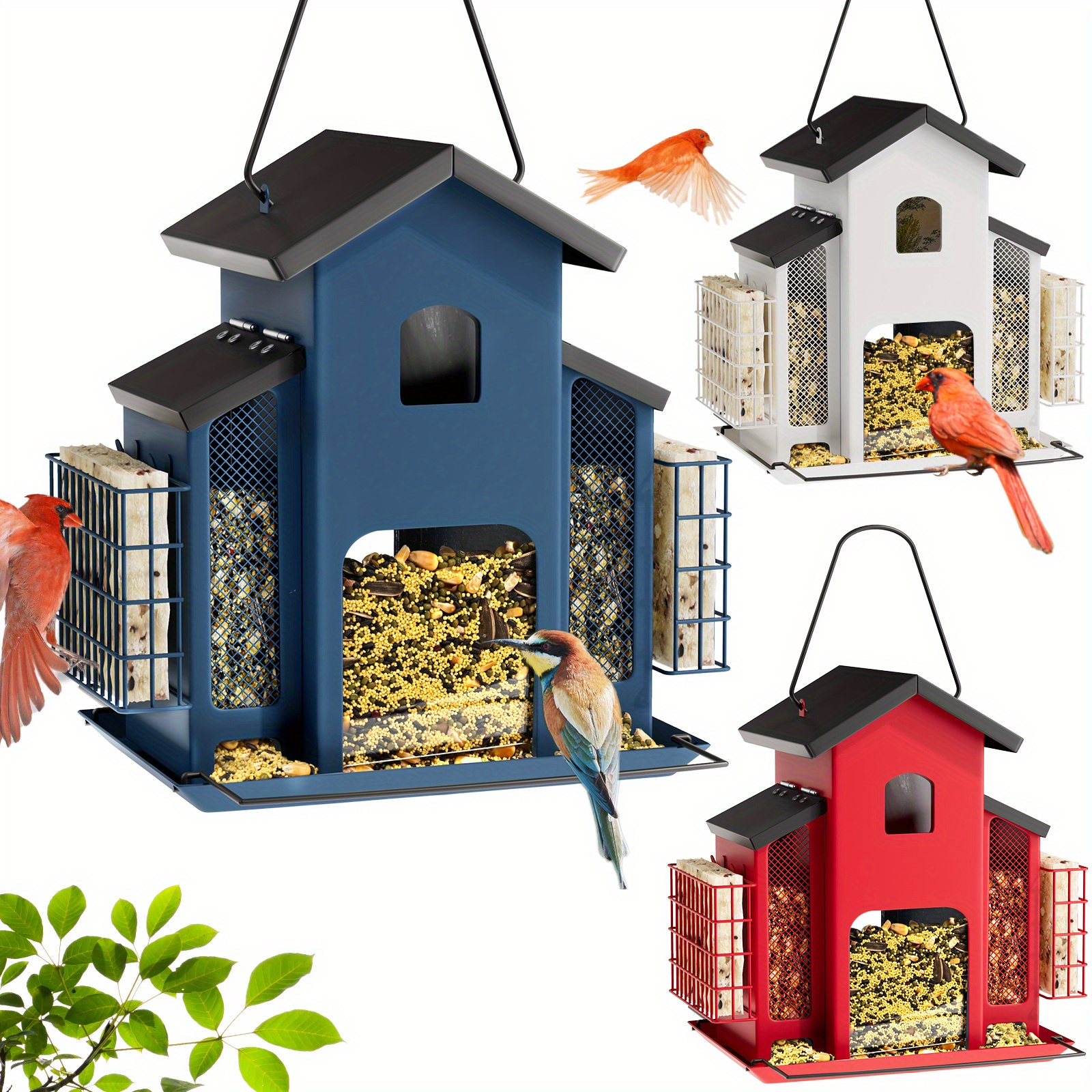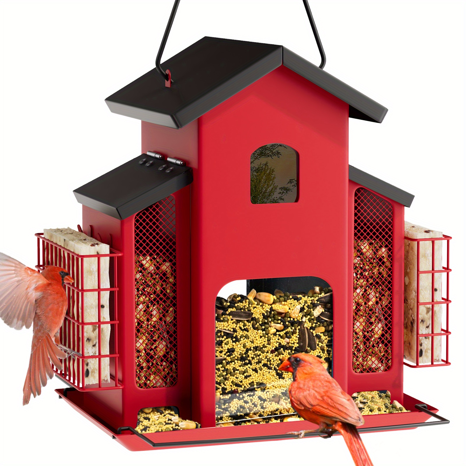 Metal Bird Feeder With 3 Mesh Side Cages - Large Capacity Outdoor Hanging Feeder For Finches, Cardinals, Chickadees - Durable Garden Bird Food Dispenser Attracting Small Birds, Classic Design | Weatherresistant Material, Bird