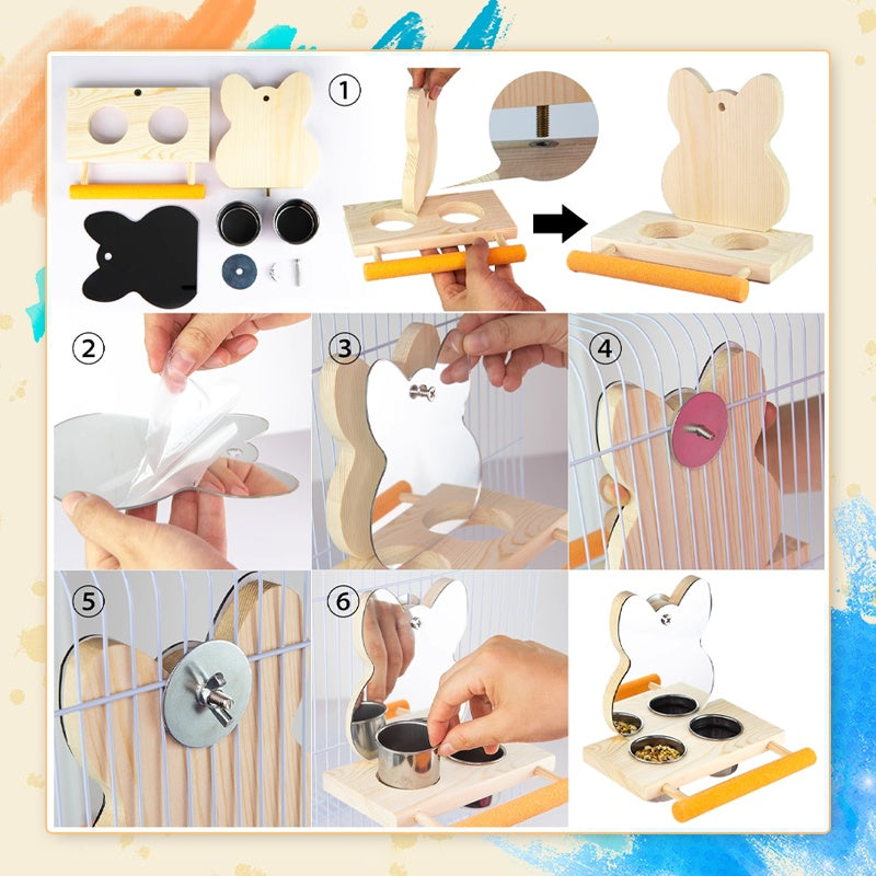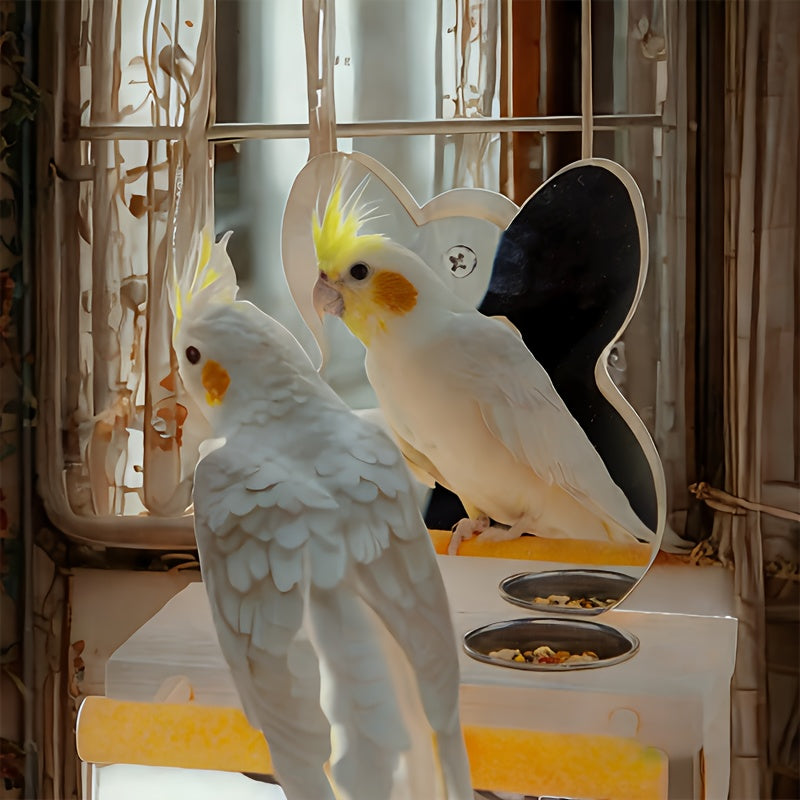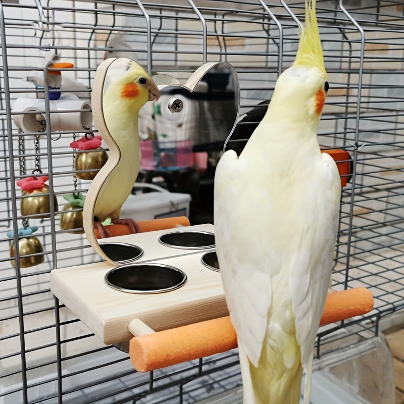 Parrot Bird Food Box Feeder Anti-spray Bird Feeder Tiger Skin Peony Bird Frosted Standing Pole Bird Mirror Supplies - You Can Eat And Play At The Same Time