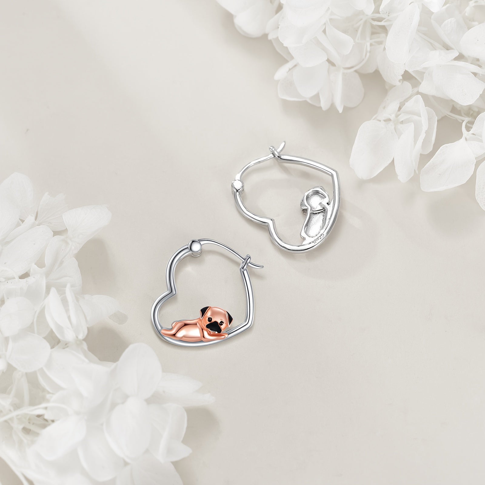 YFN Pug Earrings Sterling Silver Animal Heart Hoop Earrings Dangle Drop Dangling Cute Dog Jewelry Gifts For Women